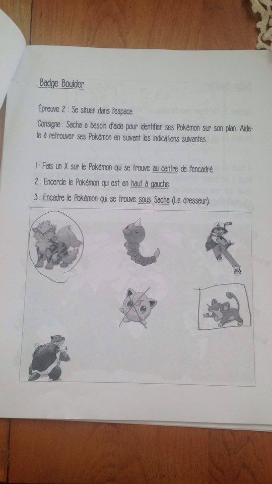 Pour les élèves de deuxième année, j’ai créé un cahier de style « champion » au thème des Pokémon. Ils incarnent un dresseur et ils doivent réussir différentes épreuves pour cumuler les badges et les Pokémon au fil de leur parcours. Chaque badge s’obtenait lorsque les élèves réussissaient les trois épreuves convenues pour le badge. Ils devaient par la suite se corriger eux-mêmes à l’aide du corrigé qui était à leur disposition. Finalement, les deux premières épreuves du même badge étaient accessibles et à leur niveau. La troisième et ultime épreuve pour obtenir le badge était plus corsée et représentait généralement un défi pour eux.