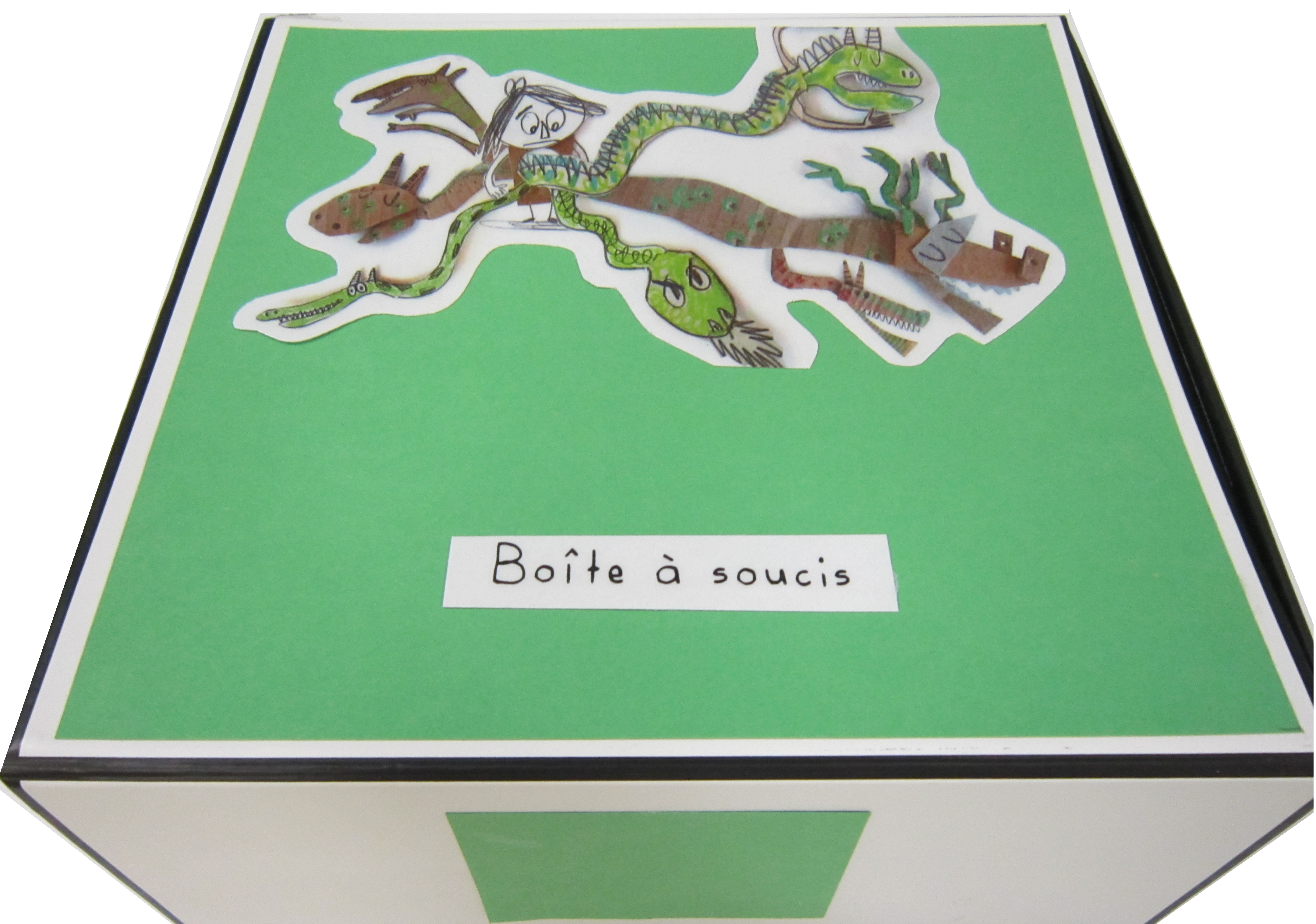 3. Lecture de La souris des petits soucis et présentation de la Boîte à soucis (t. i.). Le personnage de la souris s’occupe des soucis de tous les autres personnages en les transformant en quelque chose de positif. Heureusement, elle nous a laissé la Boîte à soucis. Ainsi, les enfants peuvent dessiner leurs soucis ou mimer qu’ils le sortent de leur tête pour l’enfermer dans la boîte. La souris viendra faire le ménage de temps en temps.