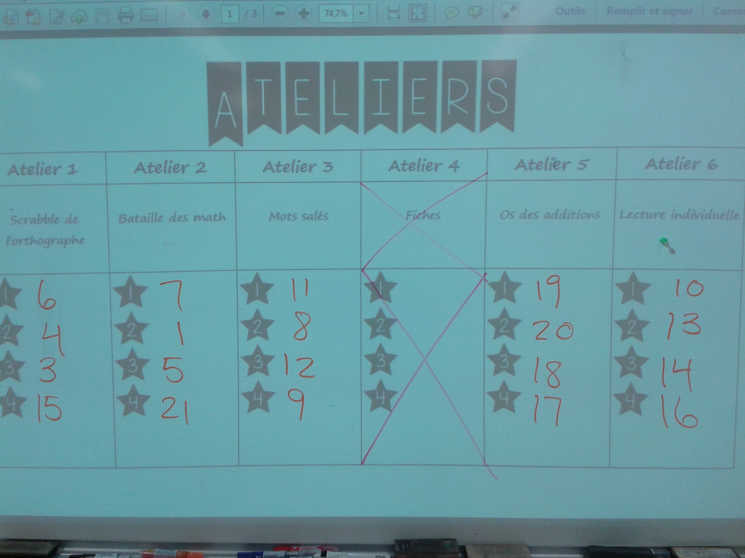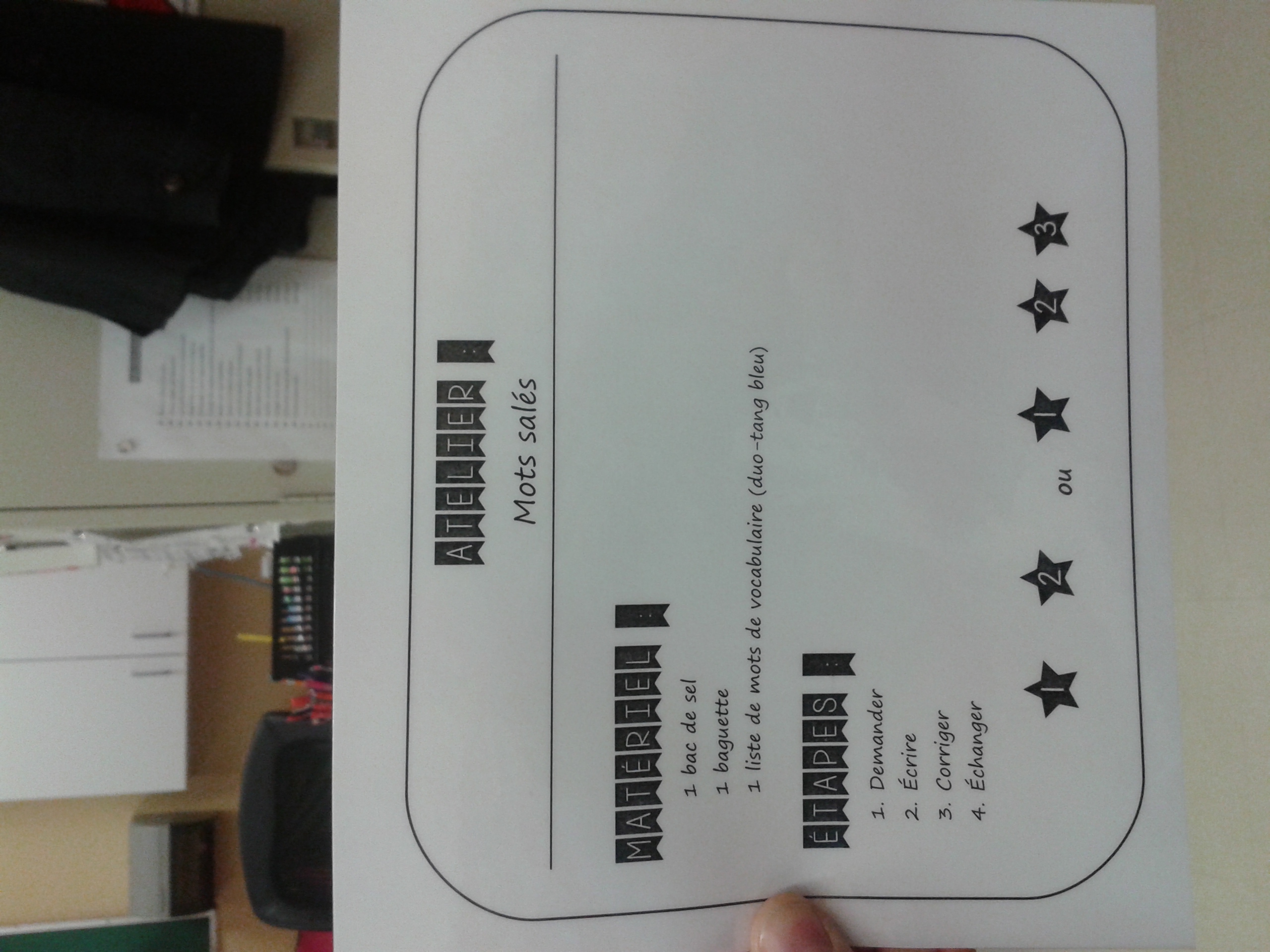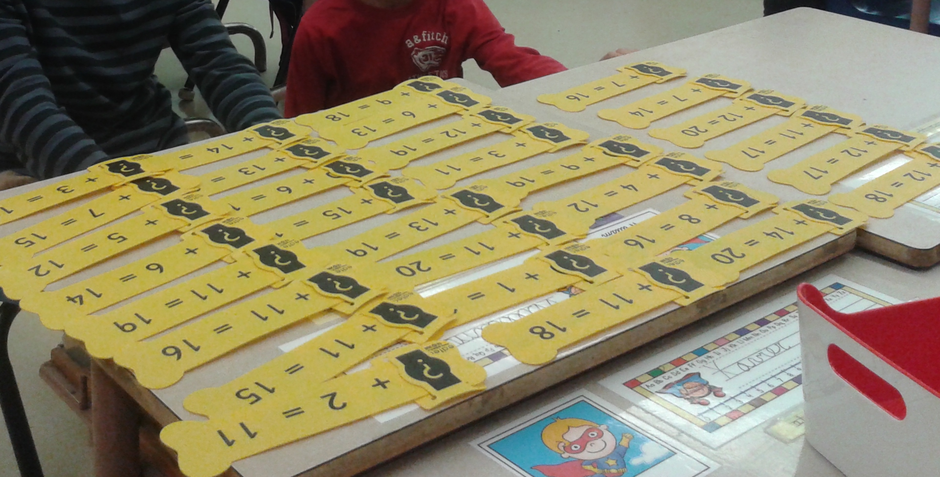 Nous avons donc débuté graduellement, en modélisant et en vivant deux ateliers à la fois, un en mathématique et un en français. Nous expliquions chacun les règles et les étapes d’un atelier, puis en supervisions le déroulement avec la moitié du groupe. Après une vingtaine de minutes, nous interchangions les sous-groupes.