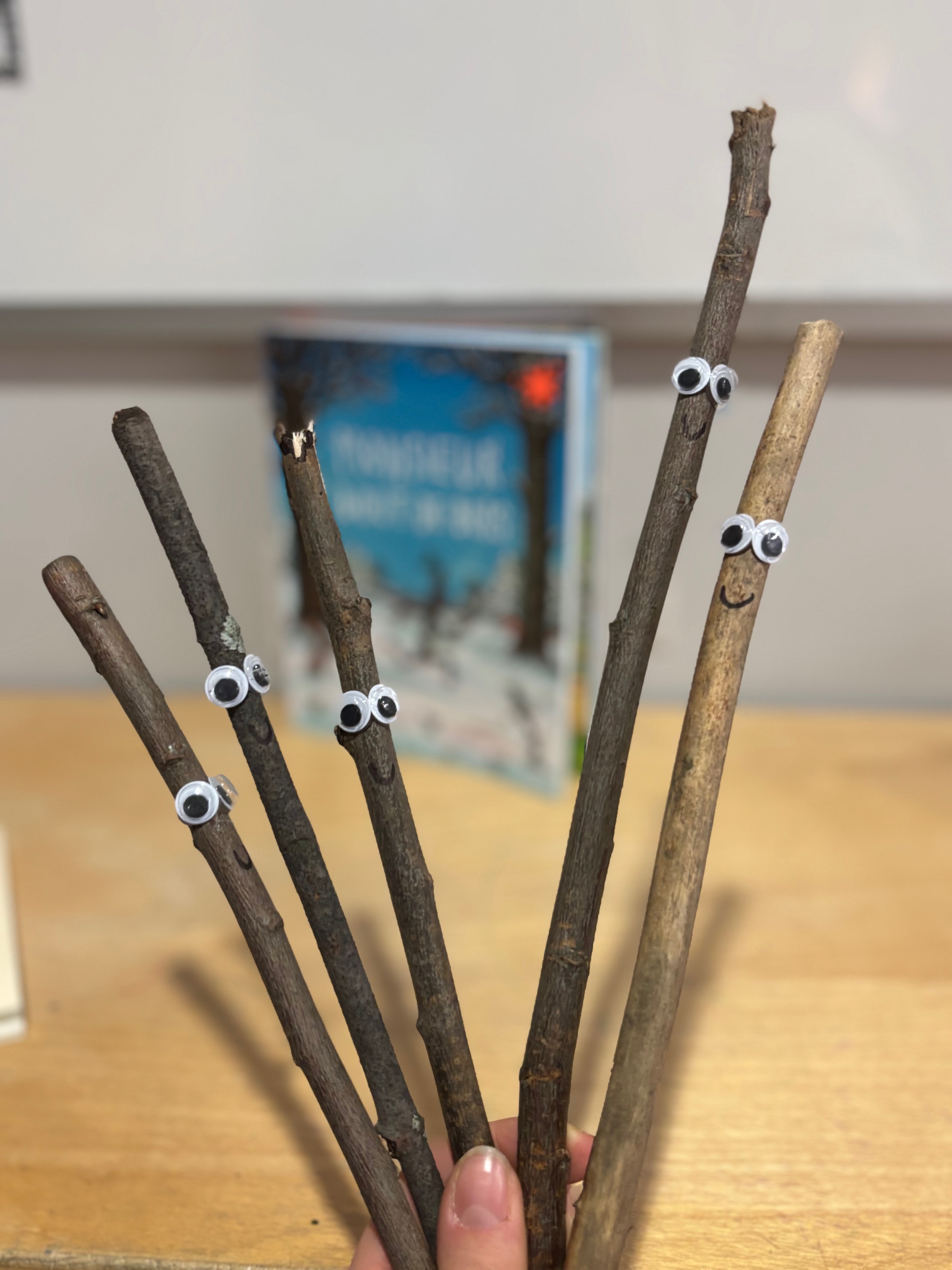 Tout au long de mon projet d’intervention en contexte, j’ai pu observer de belles retombées en ce qui a trait au niveau de jeu symbolique des élèves de ma classe en nature, mais également lors des jeux libres en classe. Bien évidemment, en sept semaines, les élèves n’ont pas atteint un niveau de jeu symbolique mature, mais le niveau de jeu symbolique de chacun des élèves a significativement augmenté. Effectivement, j’ai pu observer qu’ils amorçaient de plus en plus de nouveaux jeux symboliques, certains d’entre eux réalisaient des jeux symboliques en incluant plusieurs enfants tout en arrivant à choisir, distribuer et effectuer les différents rôles, la plupart arrivaient à avoir des scénarios de jeu commun, les jeux symboliques perduraient de plus en plus dans le temps (par exemple, certains élèves pouvaient jouer à un seul et même jeu symbolique pendant toute une période de jeu symbolique en nature) et certains enfants arrivaient à poursuivre les jeux symboliques lors des jeux libres en classe (par exemple, dans le cadre de la thématique d’Halloween, certains élèves ont apporté des branches de l’extérieur qui étaient leur balai afin de continuer de jouer aux sorcières). Par ailleurs, la substitution a également pris une grande place dans le cadre de mon projet d’intervention en contexte. En effet, à travers les lectures réalisées ainsi que la limitation du matériel disponible lors de nos périodes de jeux libres en nature, les élèves ont été amenés à développer cet aspect. Au début, certains avaient plus de difficulté à se plonger dans un jeu symbolique en nature, car ils ne disposaient pas de la même variété de matériel qu’en classe. Tranquillement, j’ai pu observer qu’ils arrivaient de plus en plus à utiliser d’autres objets (feuilles, branches, roches, etc.) afin de remplacer certains éléments dans leur jeu symbolique. Entre autres, les branches sont progressivement devenues toutes sortes d’objets : canne à pêche, balai de sorcière, baguette magique, épée, pinceau de maquillage, os, etc. La substitution a également pris place en classe de plus en plus tout au long de mon projet d’intervention en contexte. En ce sens, la substitution a été une belle avancée que j’ai pu observer en ce qui a trait au niveau de jeu symbolique de la grande majorité des élèves de ma classe.