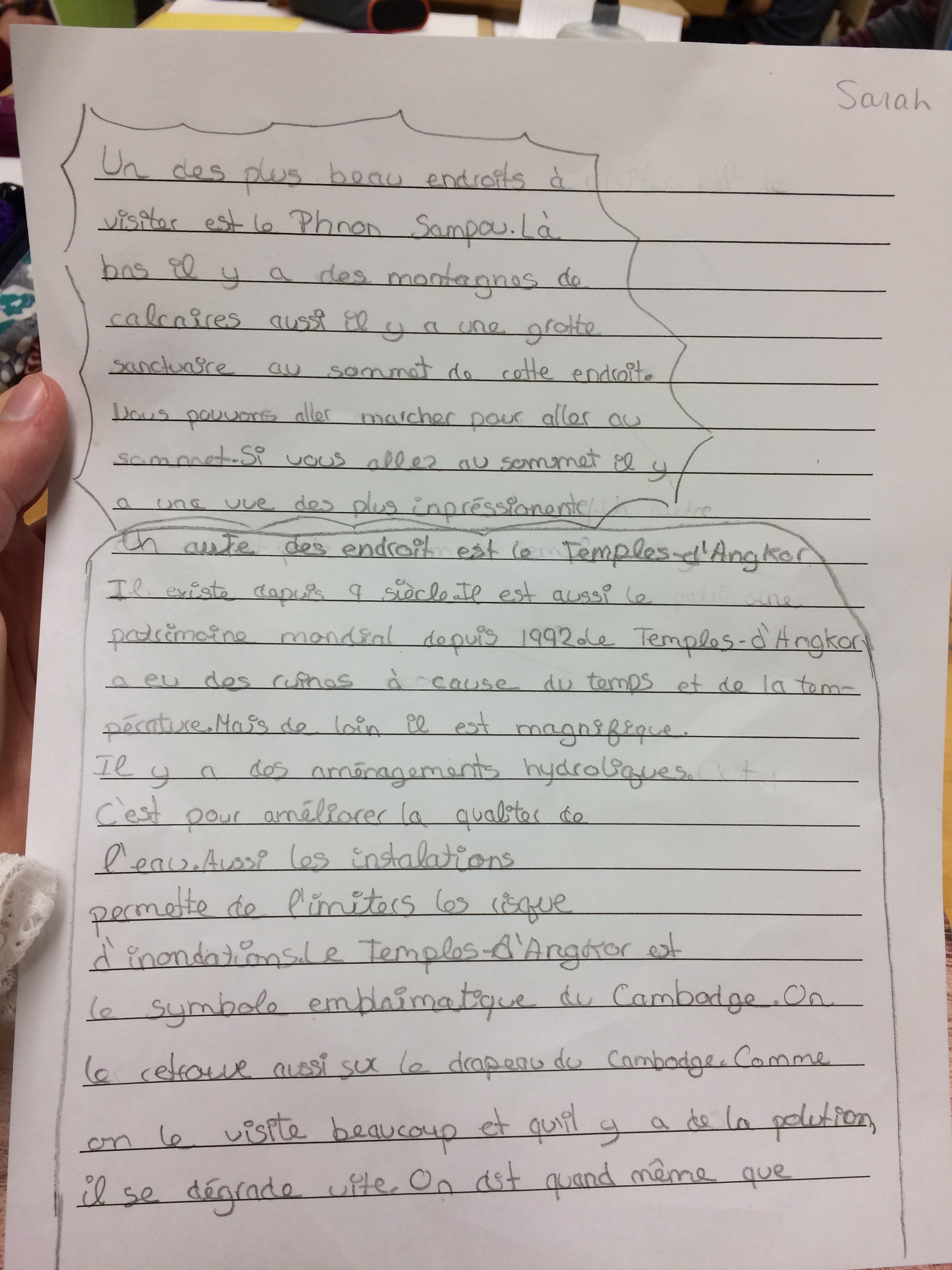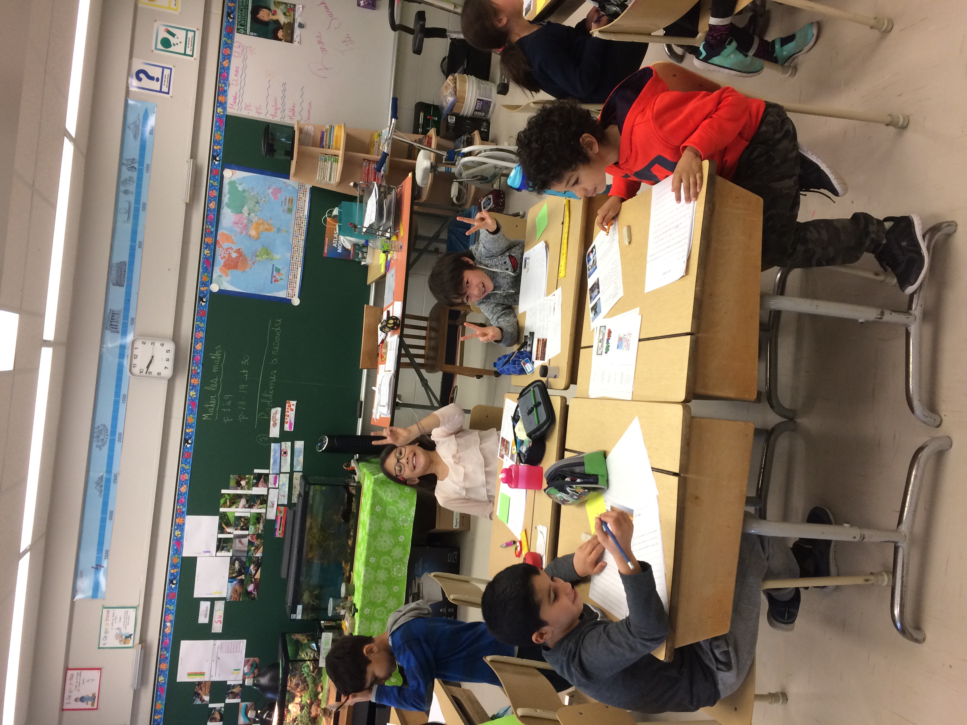 Au début du projet, j’ai toute de suite remarqué un grand intérêt de la part des élèves puisque l’on touchait directement leurs origines. Nous avions plusieurs ateliers à faire avant de pouvoir commencer à faire l’écriture et tous les jours les élèves me demandaient à quel moment ils allaient pouvoir commencer à écrire. Plusieurs d’entre eux avaient fait leur propre recherche à la maison. L’écriture a été beaucoup plus longue que prévu et les élèves avaient plusieurs questionnements. Par contre, le résultat a été des plus surprenant (exemple de texte dans les documents joints).