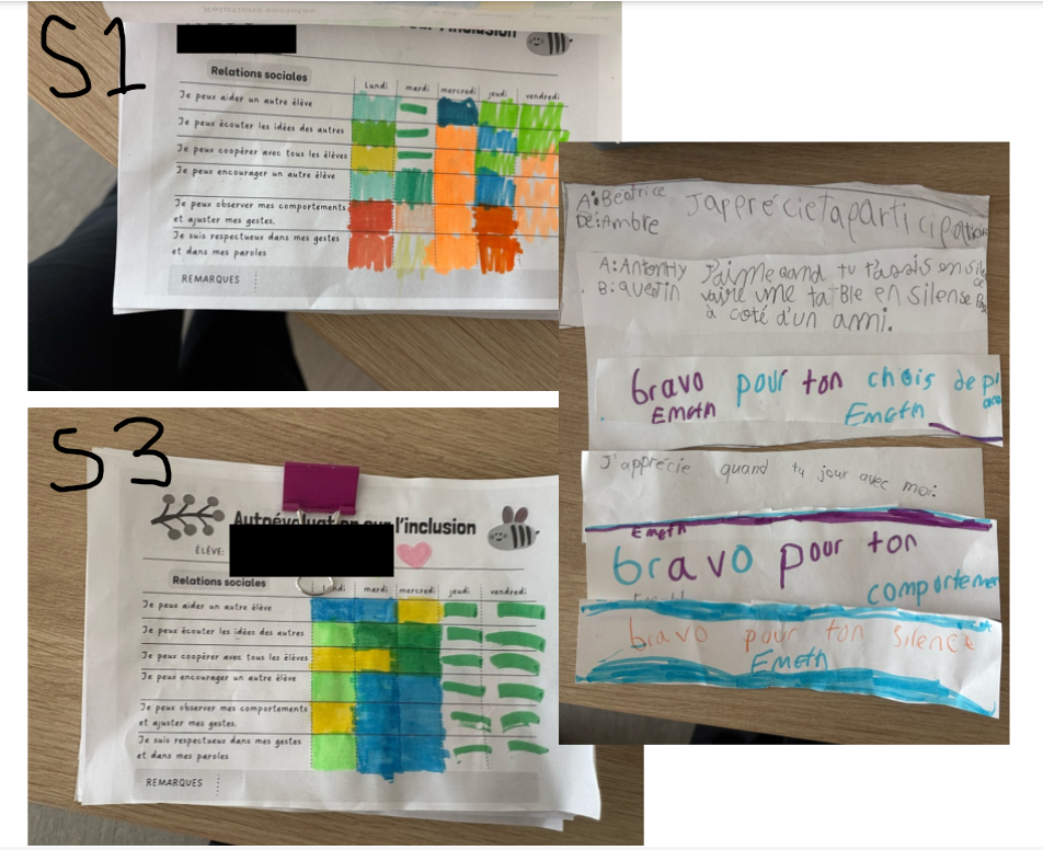 Un moment particulièrement marquant a été celui où les élèves se sont remis leurs messages positifs. Plusieurs ont pleuré de joie en découvrant ce que leurs camarades avaient écrit à leur sujet. Certains ont même partagé qu’ils ne pensaient pas être autant appréciés par les autres, surtout lorsqu’ils faisaient des erreurs ou avaient des difficultés. Pour plusieurs élèves, cette activité a réellement contribué à renforcer leur confiance en eux. Ils ont pris conscience de leur valeur au sein du groupe et du fait que leurs pairs reconnaissaient leurs qualités. Ce moment d’émotion collective a été un tournant : il a solidifié le climat d’inclusion que nous avions travaillé et a permis aux élèves de se voir autrement, avec bienveillance et respect.