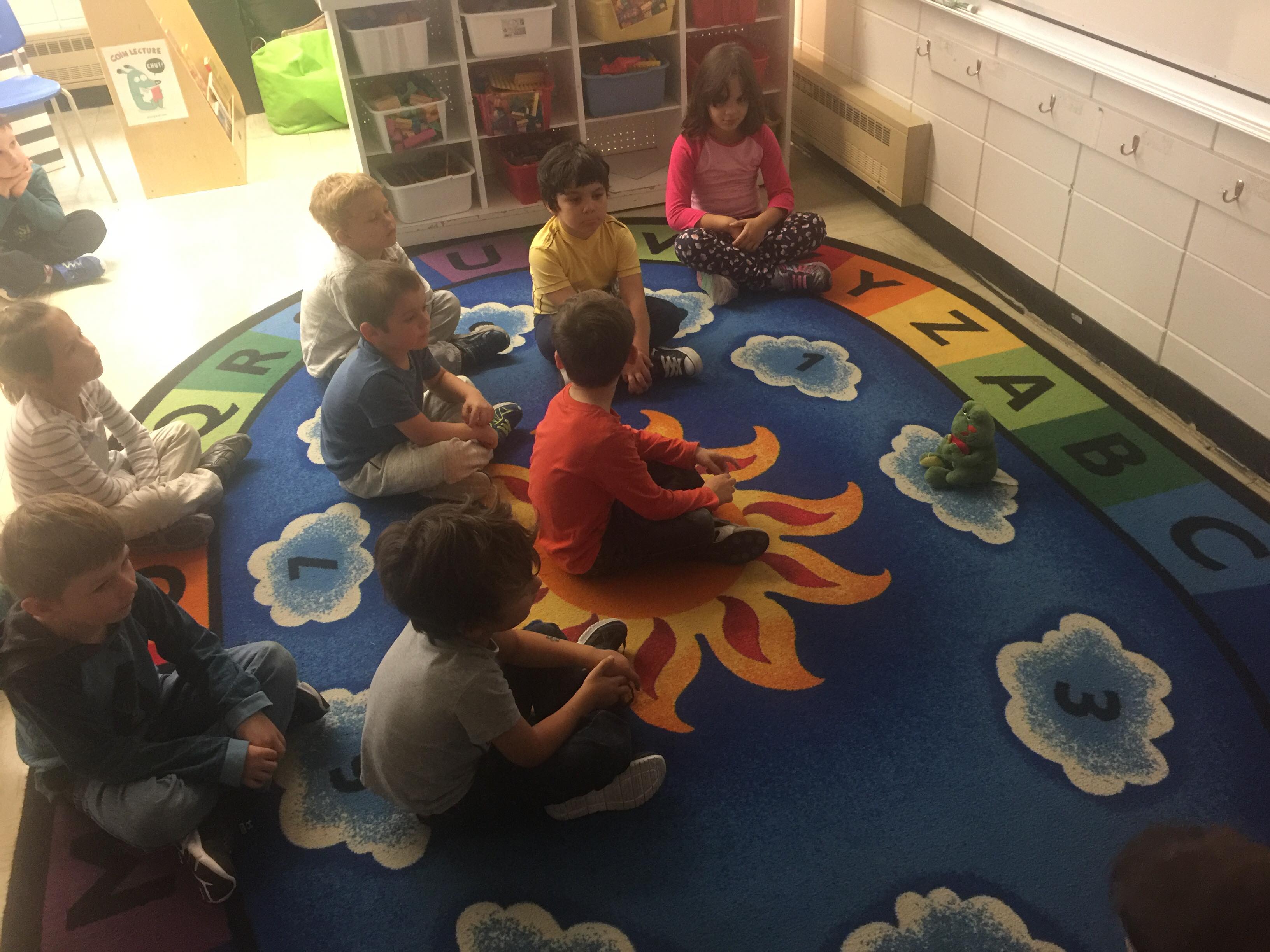 Je me suis basée sur le livre «Calme et attentif comme une grenouille» pour mettre en place les moments de méditation. En effet, il s’agit d’un livre qui s’adresse aux parents (ou enseignants) des enfants. Il est décrit diverses techniques à utiliser avec les jeunes et les méthodes pour amener la méditation d’une manière ludique. Il y a également un Cd avec une narratrice qui décrit sur quoi se centrer lors de la méditation. À divers moments durant la semaine, je remplacais les périodes de détente par des minutes de méditation. Les élèves devaient s'asseoir dans la classe et écouter ce qui était dit par la narratrice. Je méditais toujours avec mes élèves et je modélisais les gestes à faire. Après ce moment de relaxation, j’ouvrais la discussion sur ce qu’ils ressentaient dans leur corps et dans leur tête.